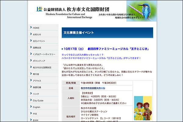 10月17日(土) 劇団四季ファミリーミュージカル「王子とこじき」 公益財団法人枚方市文化国際財団