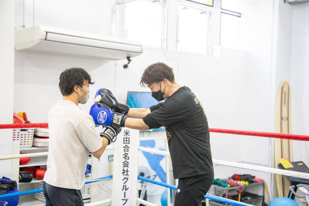 っとスパーリングする前にボクシングの基本を教えてもらいました↓