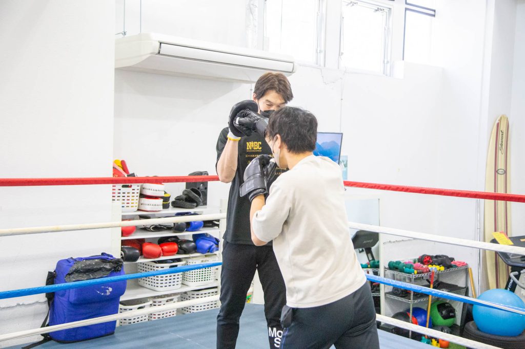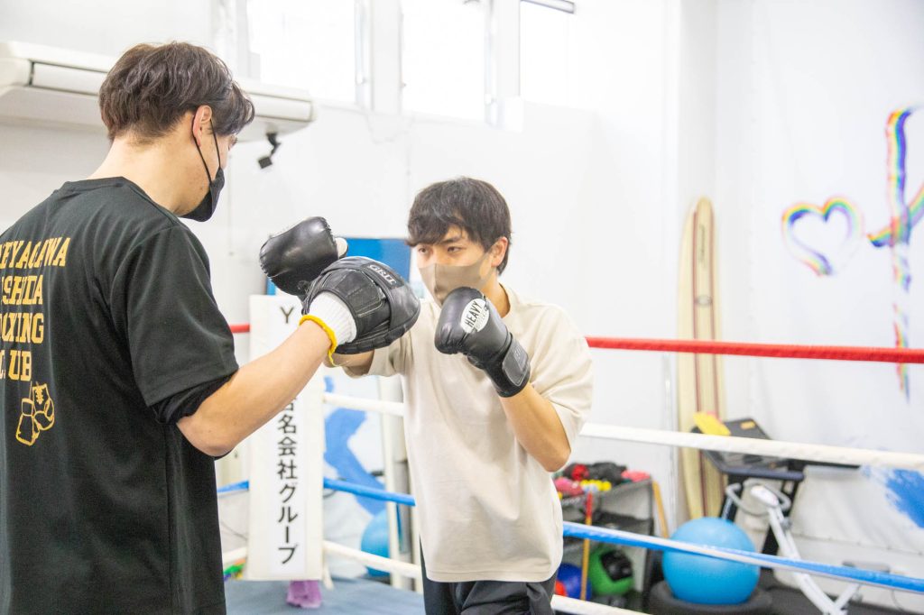 ワンツーを教えてもらった後はミット打ち。