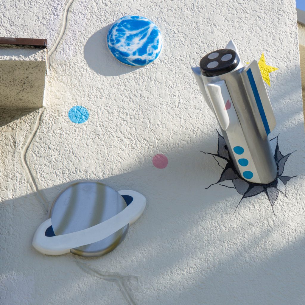 このロケット、お店の方が宇宙好きってことで、知り合いの八幡市に住む職人さんが制作したものなんだそうです。