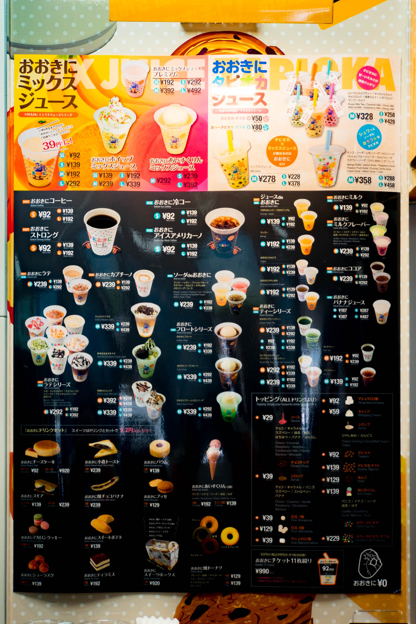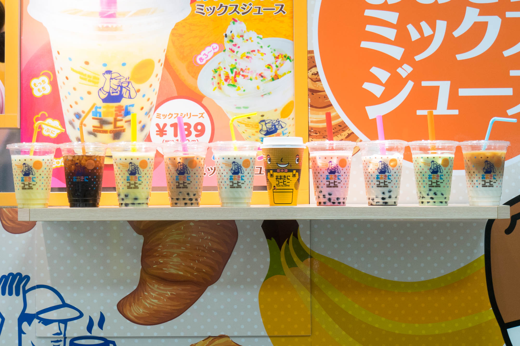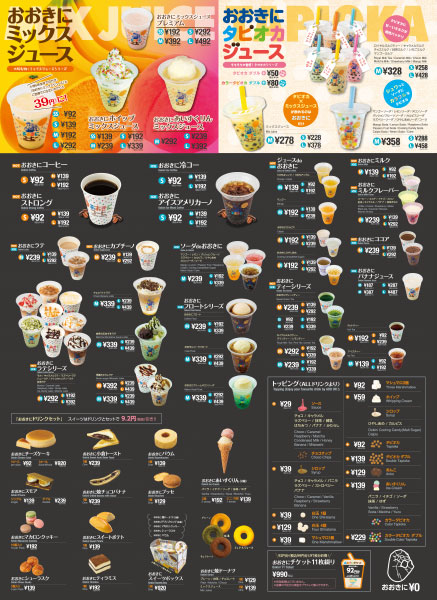 「お子さんからおじいちゃんおばあちゃんまで、老若男女問わず人気の不動のナンバー1ドリンク、それがおおきにミックスジュース!小学校6年生までは自身で注文すると、なんとSサイズがたったの39円で楽しめます!」