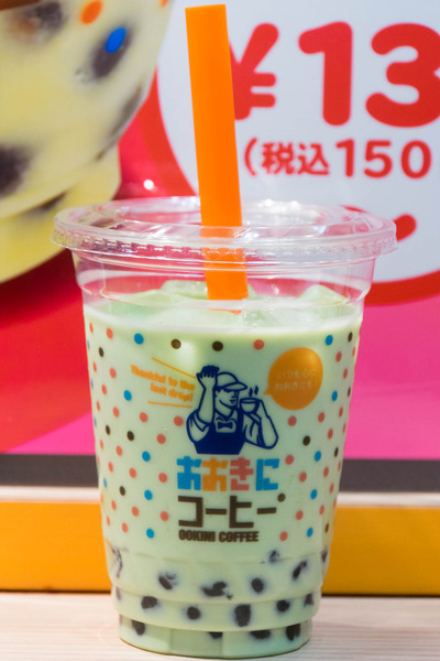 「おおきにタピオカジュース 抹茶ミルク(Mサイズ328円税別)」です!