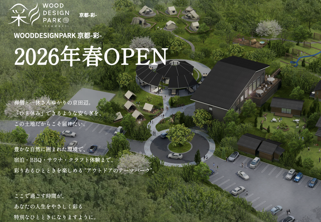 お隣京田辺に作っているアウトドアテーマパーク「ウッドデザインパーク京都-彩-」の公式サイトが公開されています。