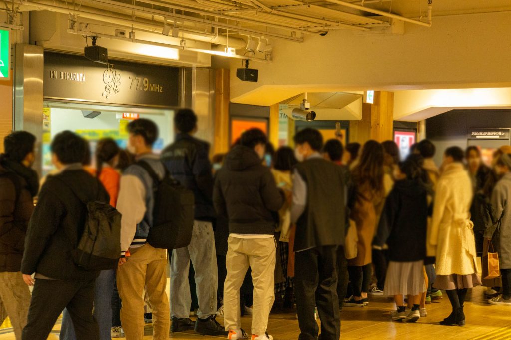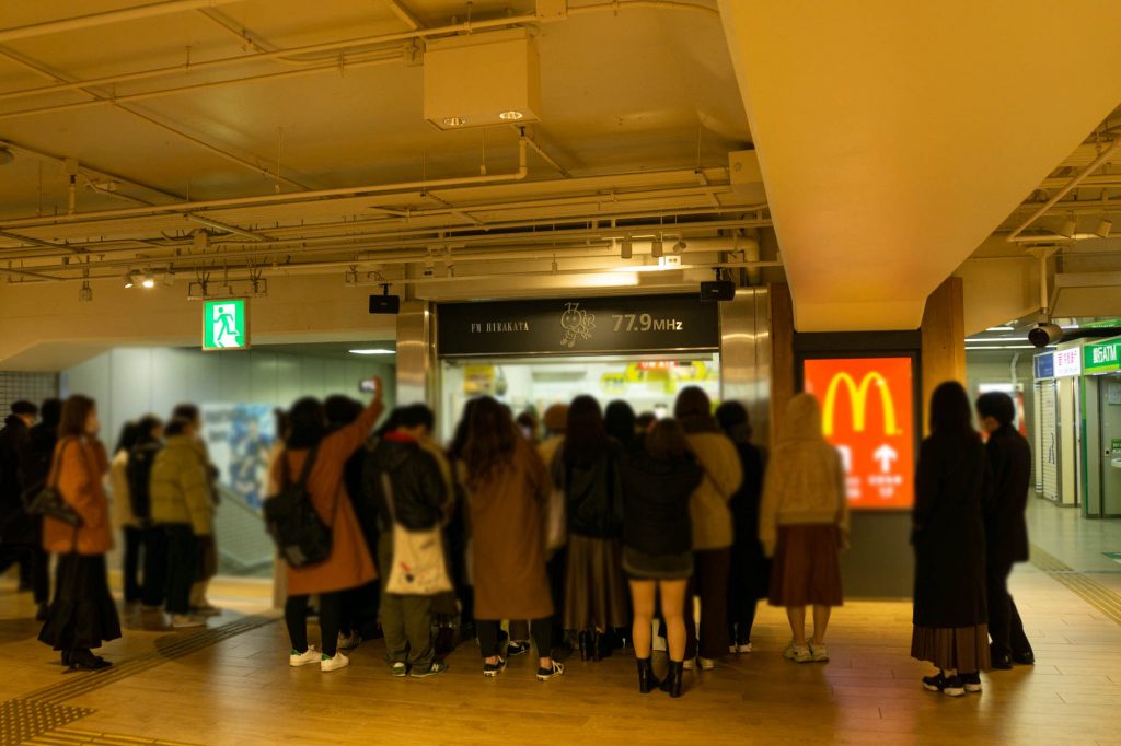 吸い寄せられるかのように改札降りた人たちがラジオの前へ向かっていました。