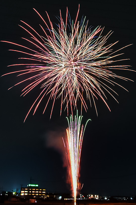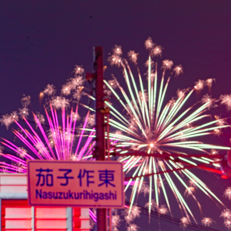 今回あがっていた花火は読者さんからの情報提供によると、周辺地域の夏祭りと新成人のお祝いを兼ねての花火大会「茄子作花火」なんだそう。
