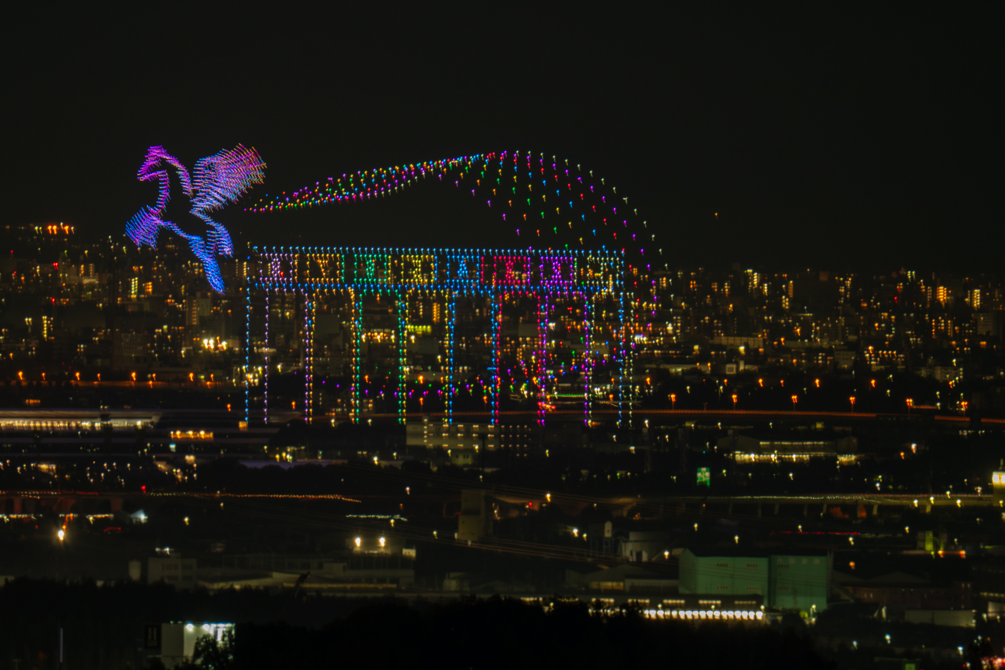 つづいてドローンショーがもう1つ見えまして、先日記事にした京都競馬場の「センテニアルナイト ドローンショー」が日曜日に。枚方からはお米粒くらいのサイズで視認できまして、どちらかというと現地で見るのをオススメしたい感じです。
