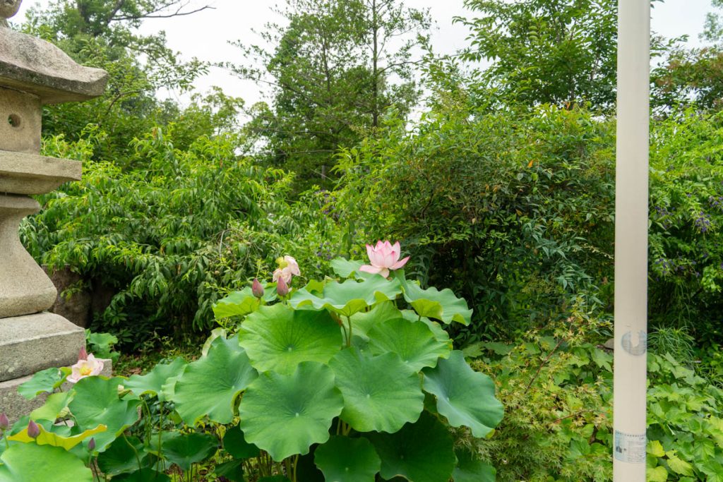 村野神社に極めて稀とされる「双頭蓮」が咲いています。
