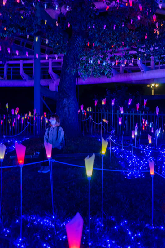 カラフルなお花を模したイルミネーションがたくさんあり、そのあいだの遊歩道を歩くことができるエリア。