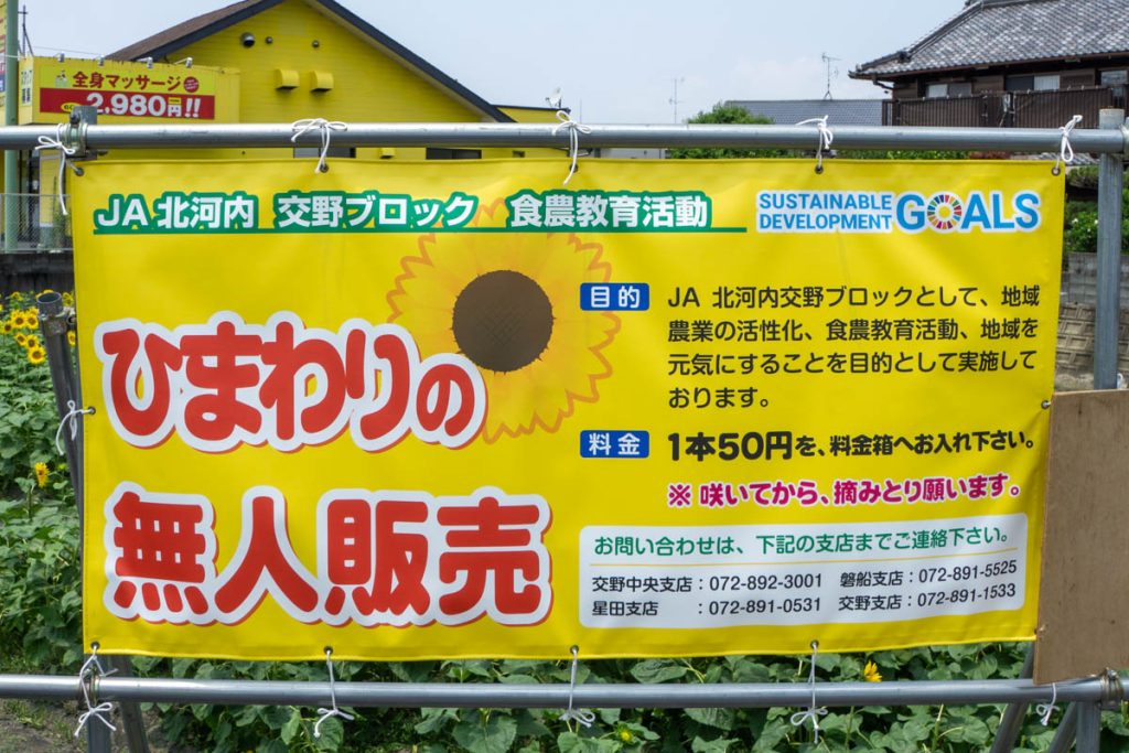 交野市のひまわり無人販売所の開花状況のフォトです。