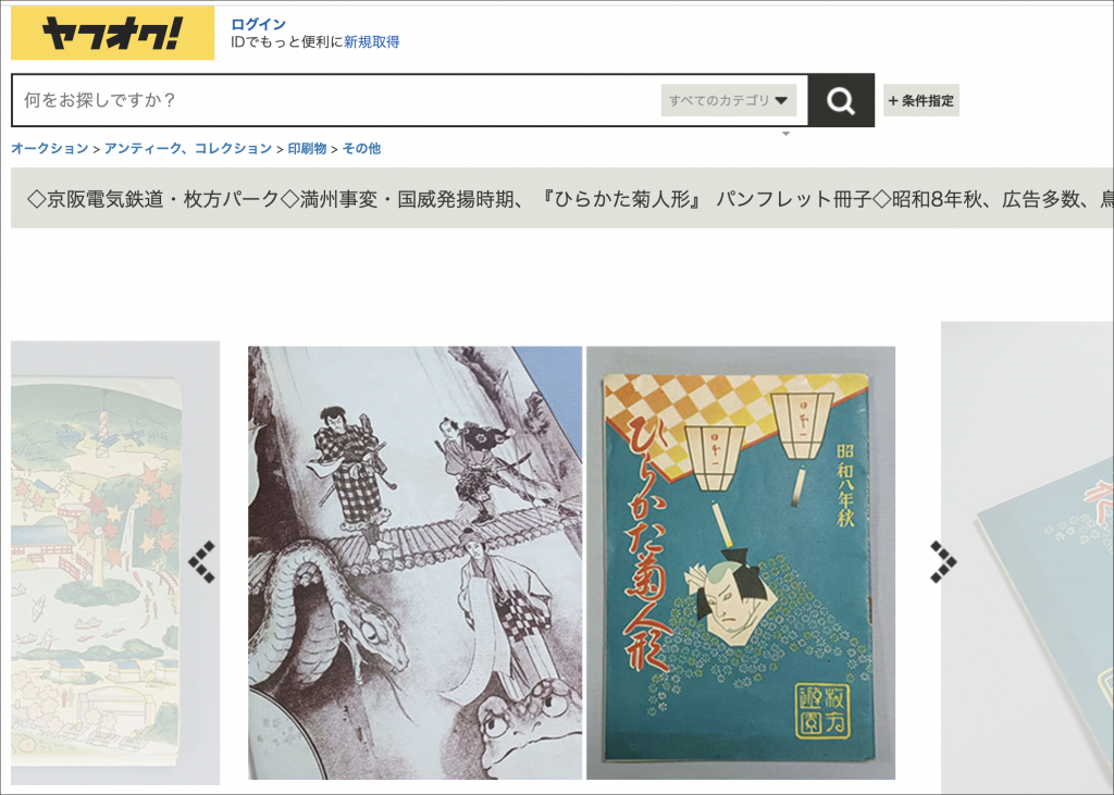 昭和8年の「ひらかた菊人形」 のパンフレット冊子がヤフオクに出品されてる