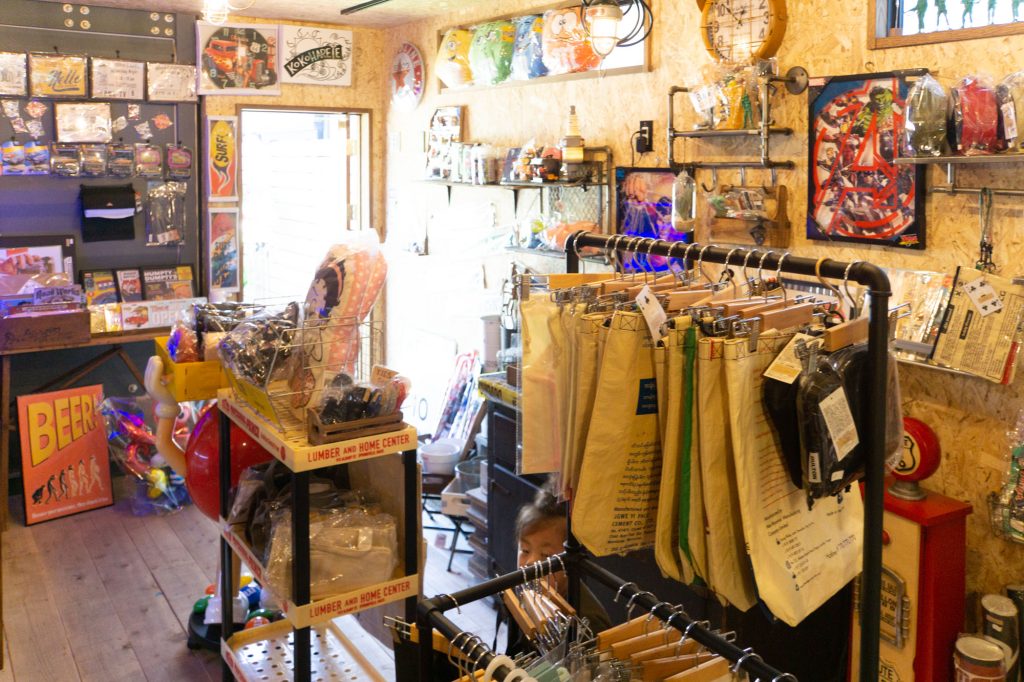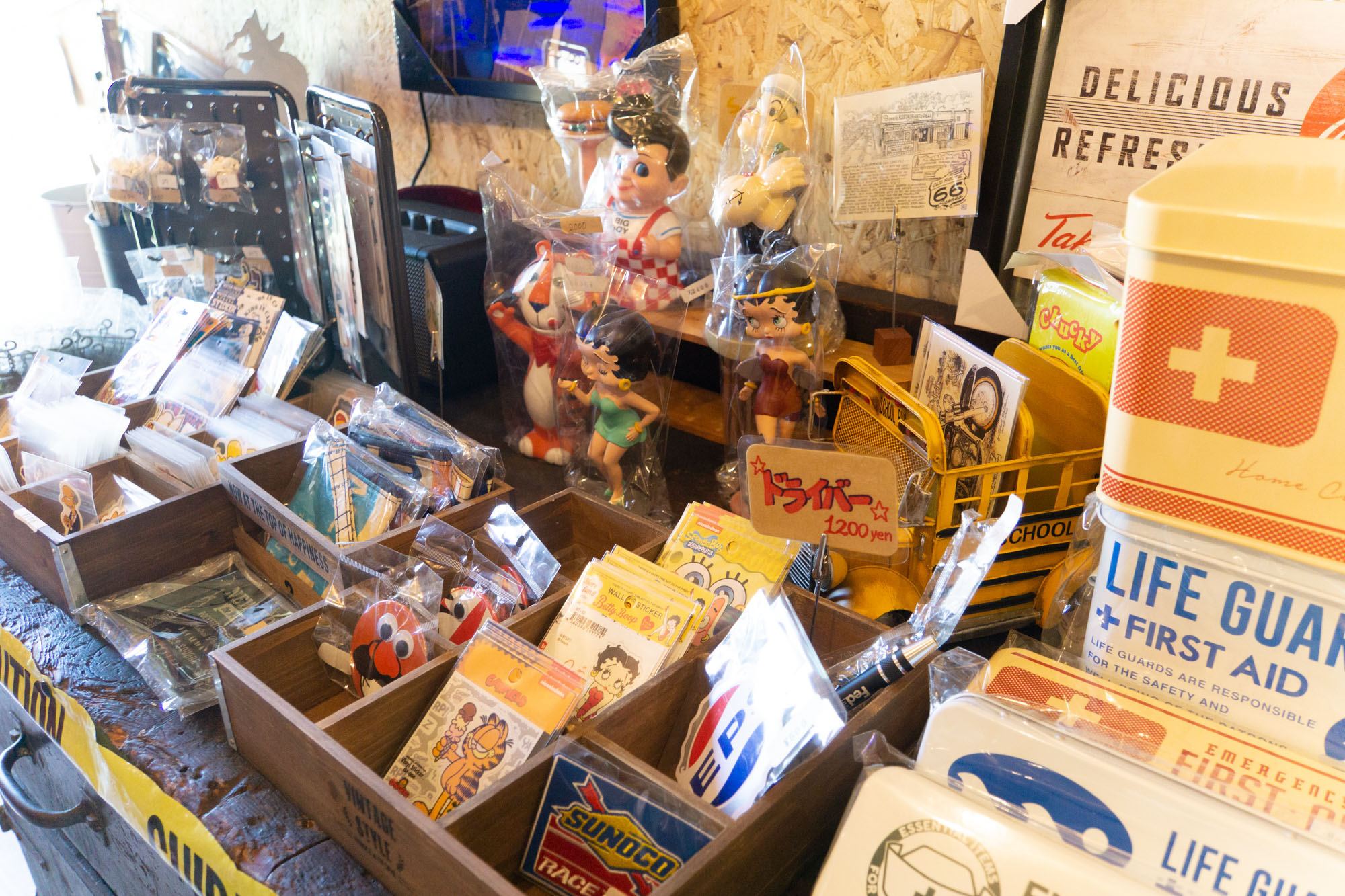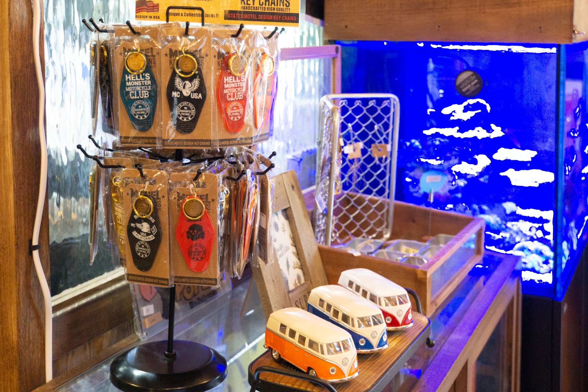 キーホルダーやマグネット、トートバッグなどなど、幅広いアメリカンなアイテムがあり、アメリカン雑貨好きな方にとってはたまらない空間になっていました。