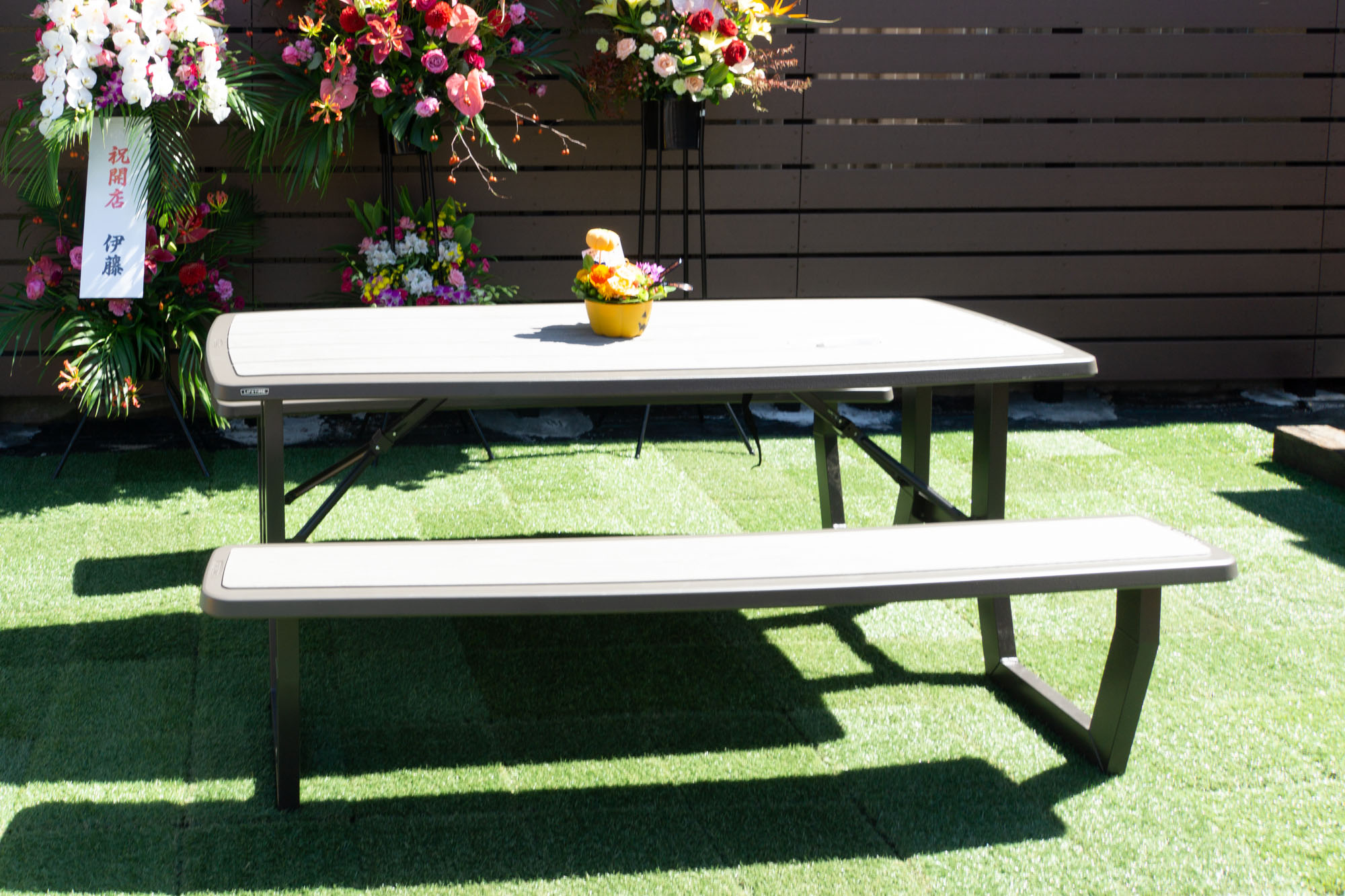 お店のお庭にはテーブルや椅子などがあり、ここで飲食することも可能だそうです。