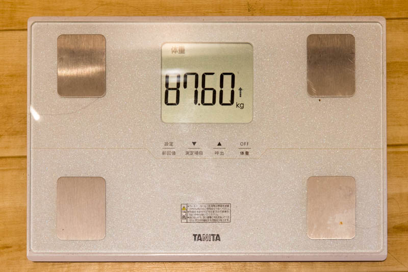 先週は86.55キロだったので、1週間で1キロ太ったという結果に。