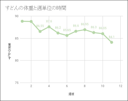 3ヶ月(12週)で8kg痩せないとすどんは罰ゲームで東海道を東京まで歩くハメになりまして、今週は11週目、残り1週です。