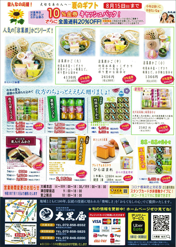 また、8月15日まで対象ギフト商品の合計金額の10%金券キャッシュバック+全国送料20%OFFキャンペーンをしていますので、お得なこの機会に是非どうぞ!