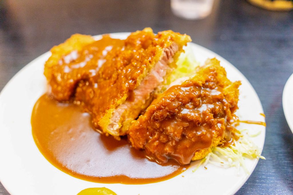 迫力満点のどデカいトンカツはこの日の疲労を吹き飛ばすくらいの美味しさ!