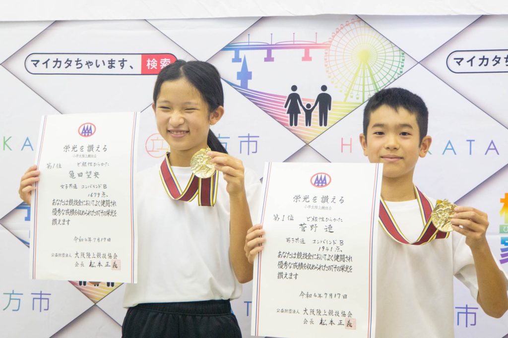 この2人、7月に開催された小学生陸上競技交流大会大阪府大会のコンバインドBという競技で優勝したとのこと。