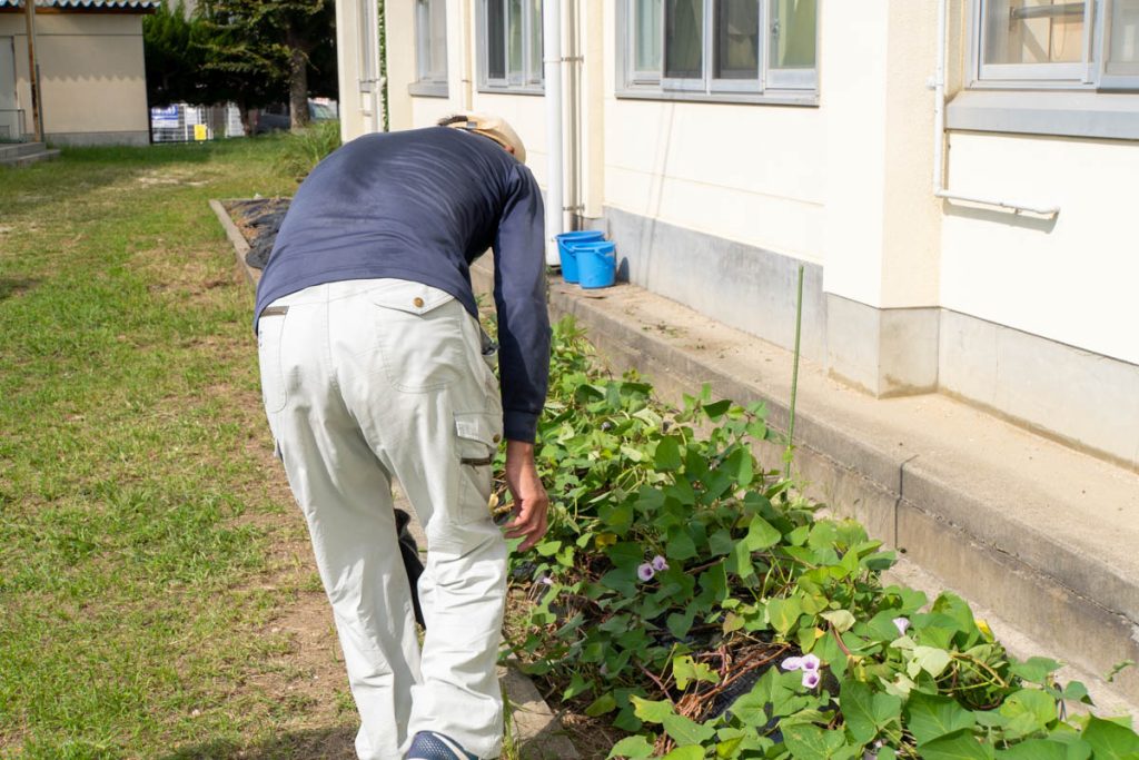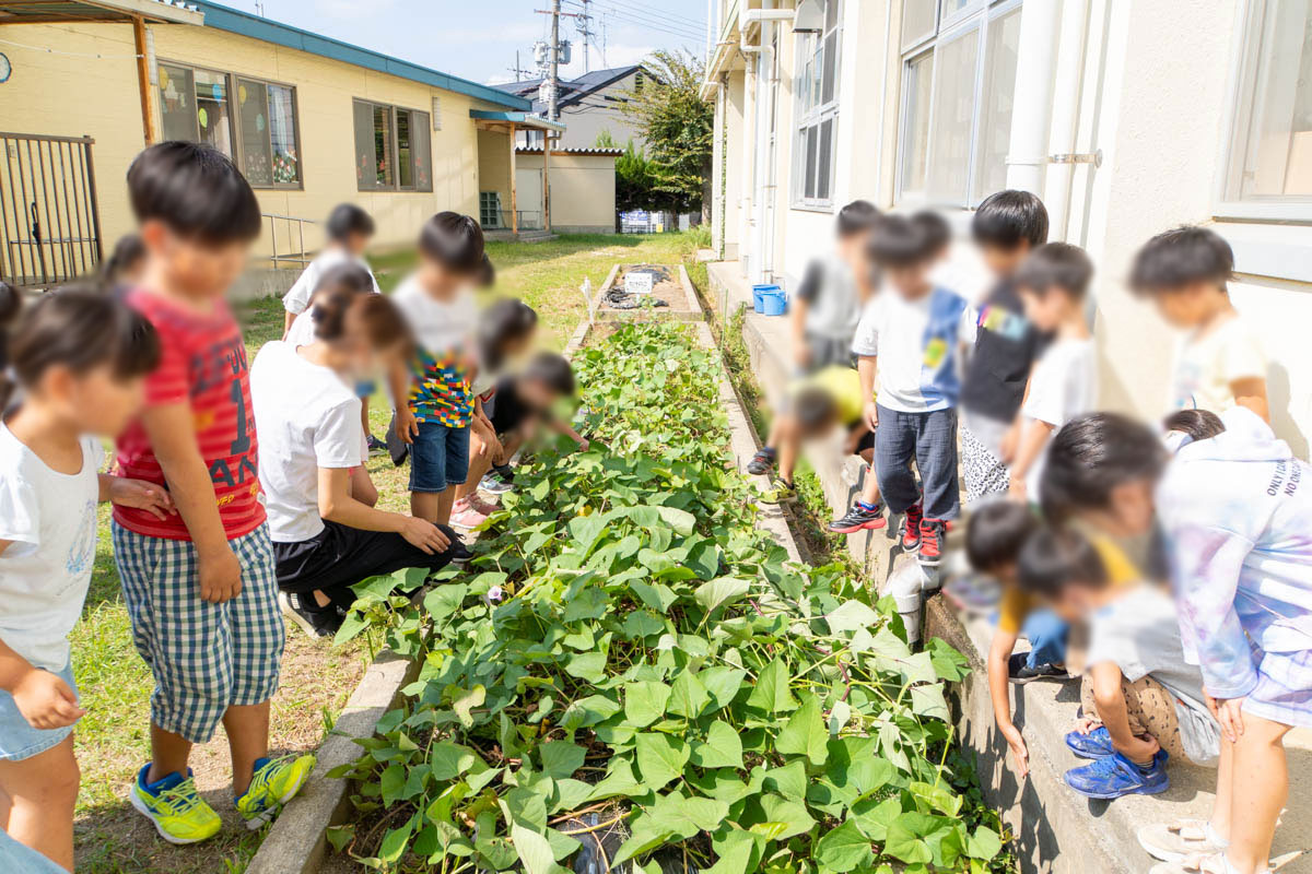 こちらが田口山小学校のさつまいも畑。1年生が育てているそうです。