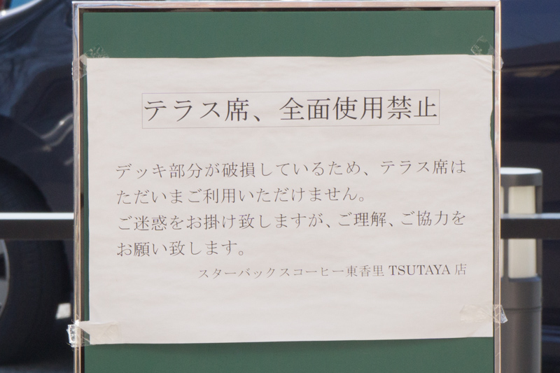 「スターバックス東香里のテラスが閉鎖されてます。