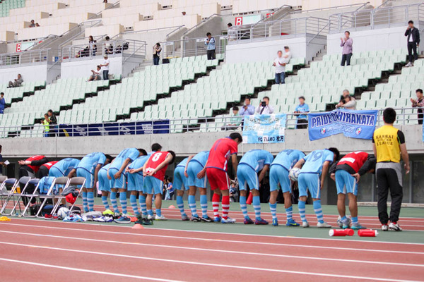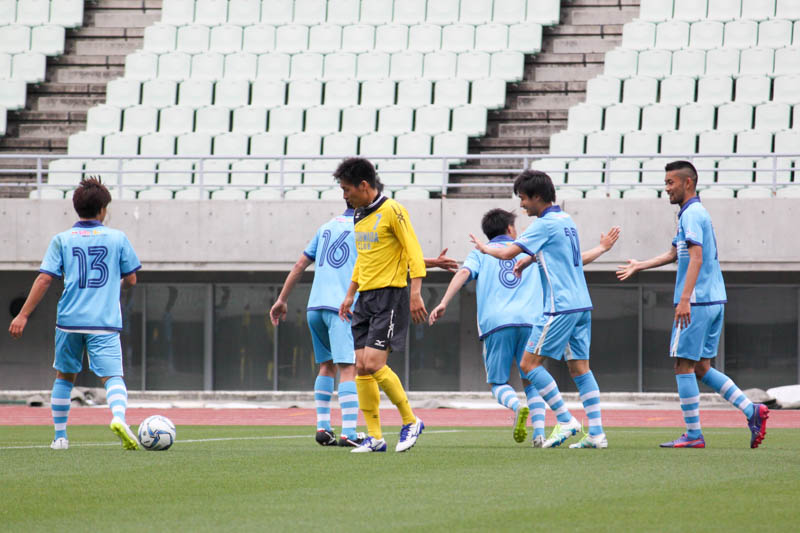 最後のゴールは、後半アディショナルタイムにセットプレーからこぼれたボールをNo.4金泉が豪快に決めて5−0で試合終了。