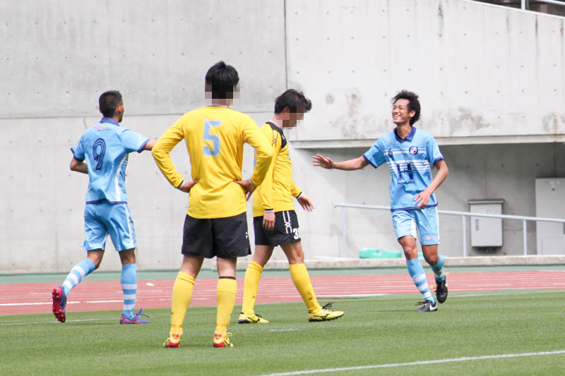 そして、その勢いで開始早々前半3分のコーナーキック、No.11木田の蹴ったボールをNo.3藤代が打点の高いヘディングで相手のゴールネットに突き刺し先制!