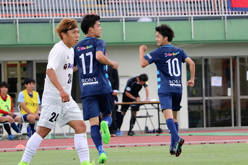 その直後の後半35分に相手のパスを中盤で奪ったNo.10加藤がそのままゴール前までドリブルで持ち込み、強烈なミドルシュートを叩き込み4-1とします。