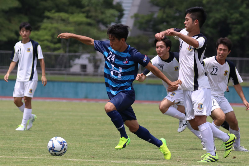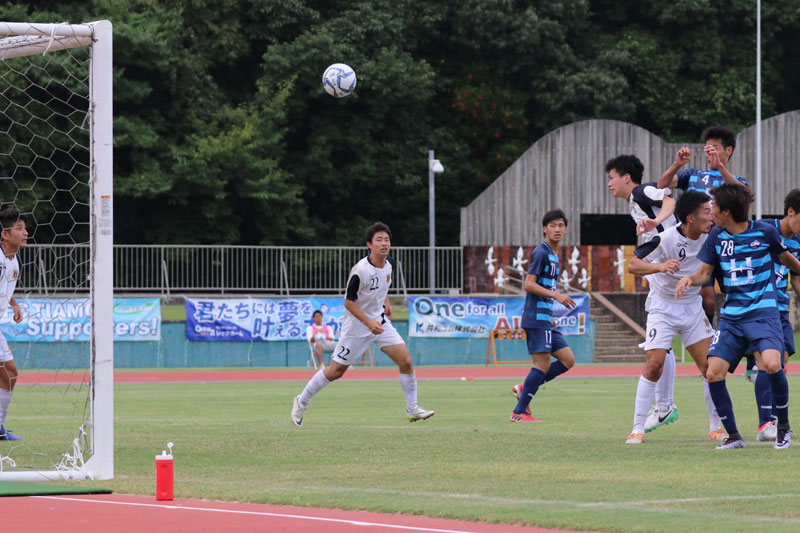 均衡した時間続くと、前半20分、左サイドを突破したNo.23岡田のクロスをNo.17山浦がヘディングシュート、ゴールポストに弾かれたところをNo.8浦が押し込んで先制。1-0。