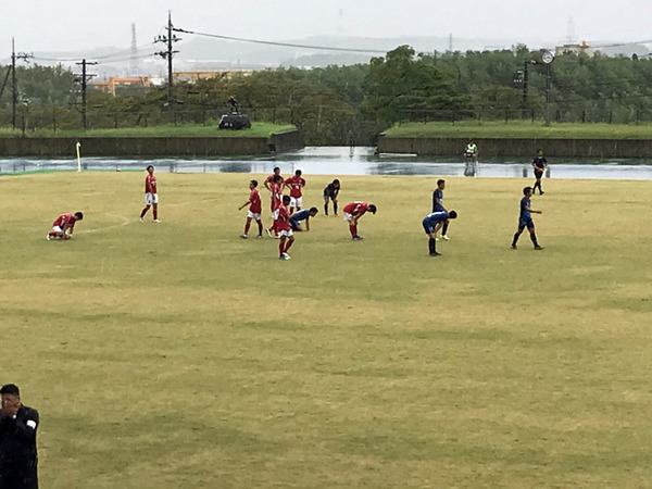 運命の後半は途中から雨が降り出し、攻め込まれる場面もありましたが懸命の守りでしのぎこのまま終了かと思われた残り5分、関大FC2008のゴールが決まり2-2の同点に。