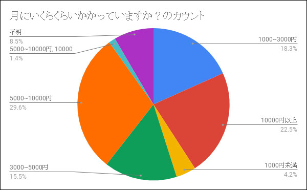 と、こんな感じで5000〜10000円という回答が一番多い結果に。