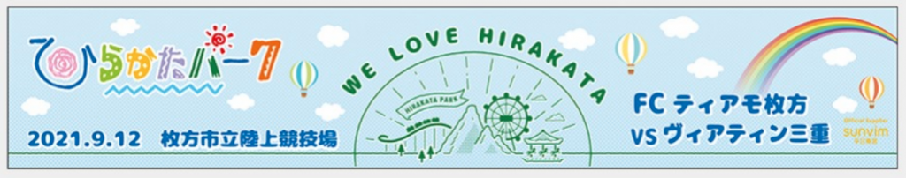 9月12日の枚方市立陸上競技場でヴィアティン三重との試合において開催される「ひらパーDay」では、ひらかたパークとFCティアモがコラボしたTシャツ付チケットが販売されたり、マッチデー限定プリントタオルもいつもとは異なるデザインになっていたり、他にもたくさんの企画があるんだとか。