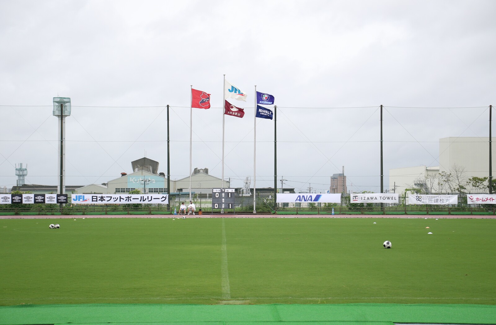 前回は、前半23分に雷による中止が決定したので、今回の試合は点数1-0、前半23分からの続きからになります。(→詳細)