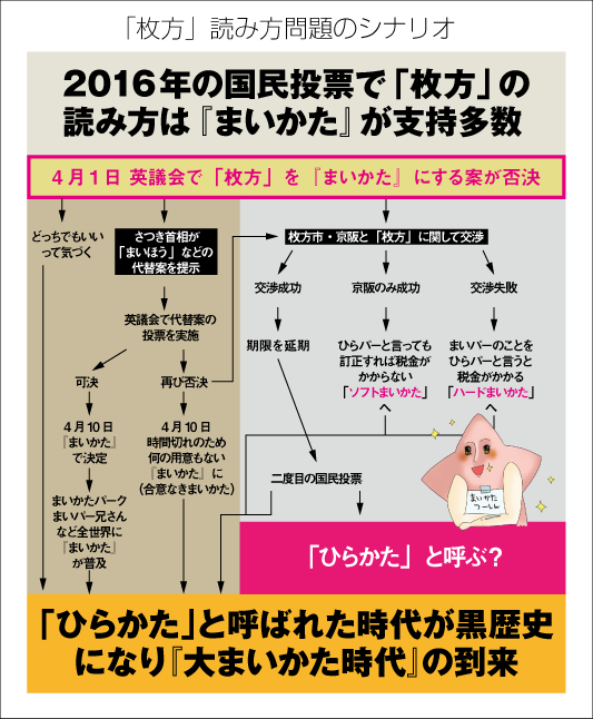 2016年に実施されたイギリスの「枚方」を『まいかた』と読むことの是非を問う国民投票(United Kingdom 枚方 of maikata tteyomimation referendum)。