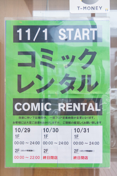 リニューアルオープン日である11月1日から11月4日までは22周年セールとしてコミックレンタルが全品50円税別になる模様。