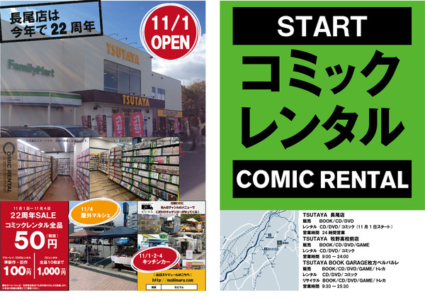 なお、長尾店のコミックレンタル開始で、枚方市内にある全てのTSUTAYAがコミックレンタルに対応することに。