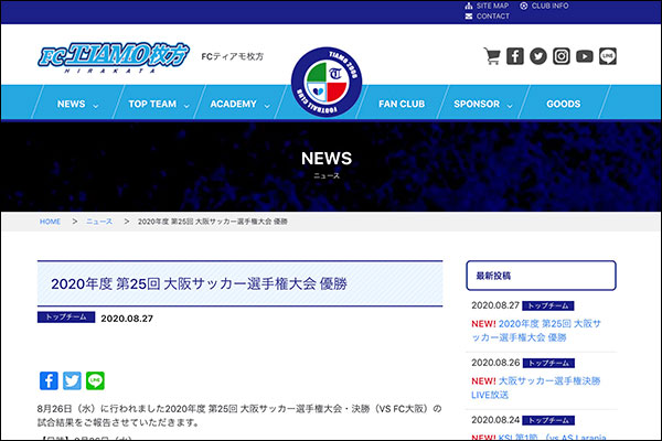 2020年度 第25回 大阪サッカー選手権大会 優勝|FCティアモ枚方オフィシャルサイト