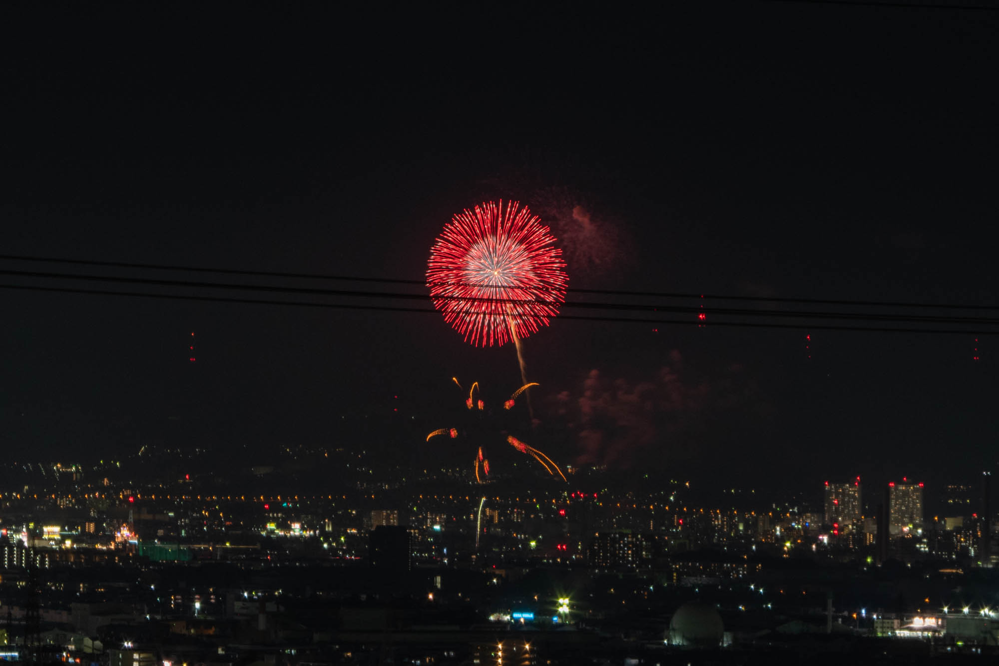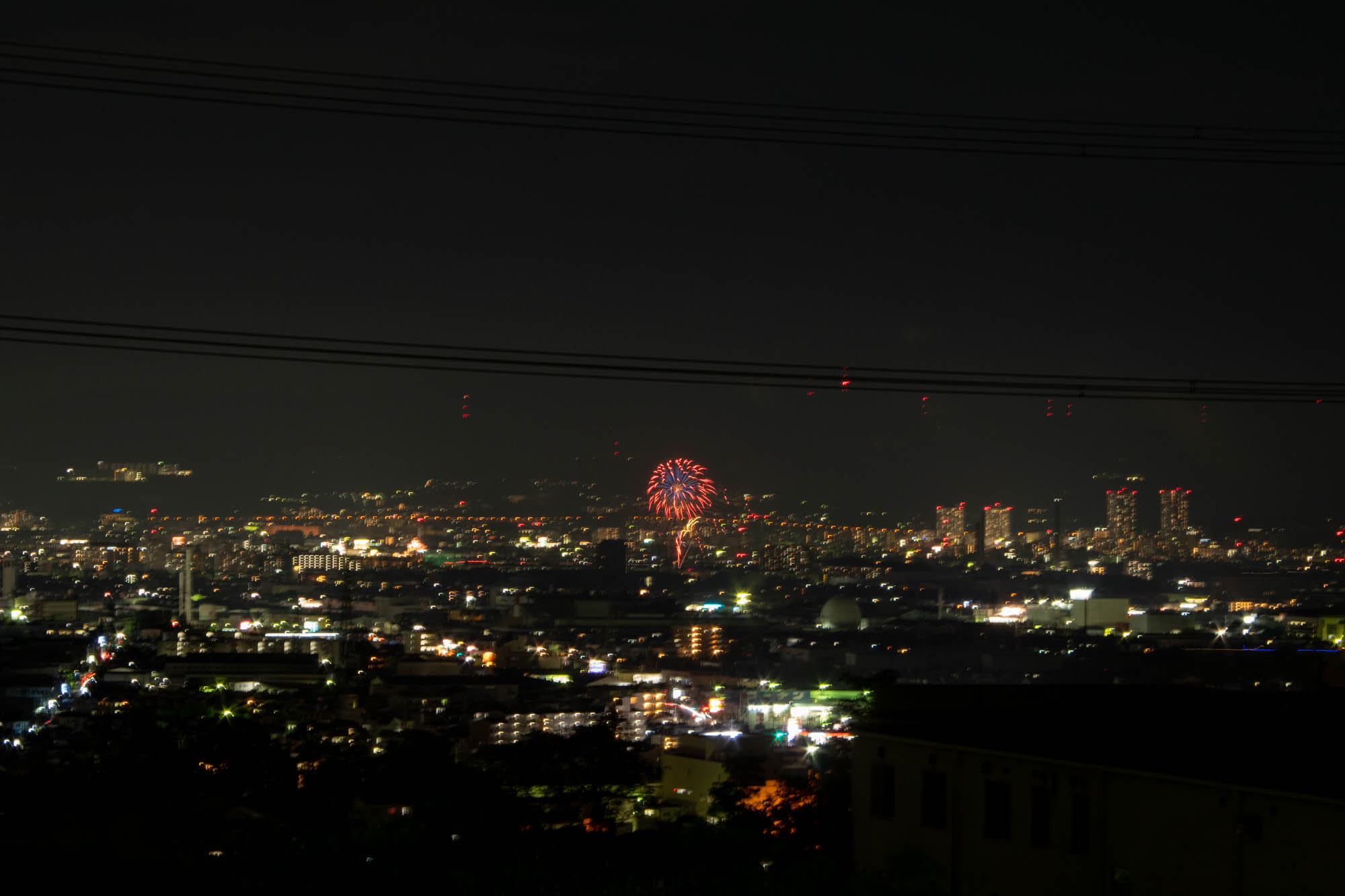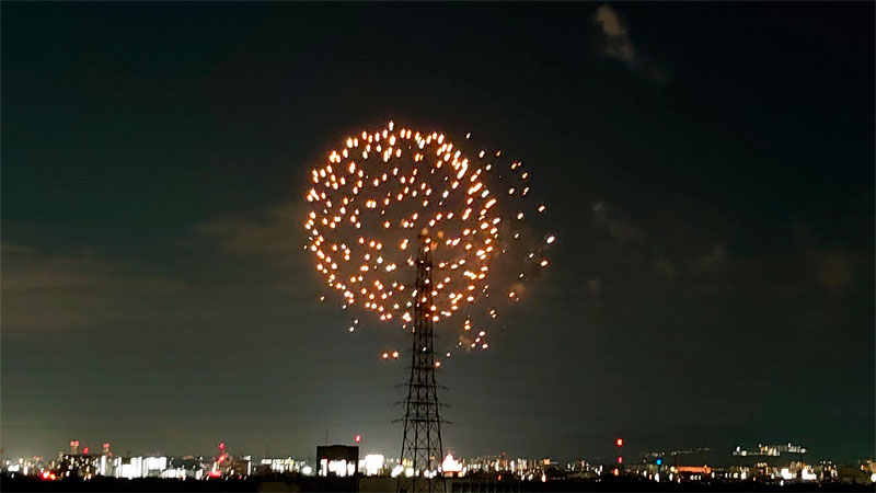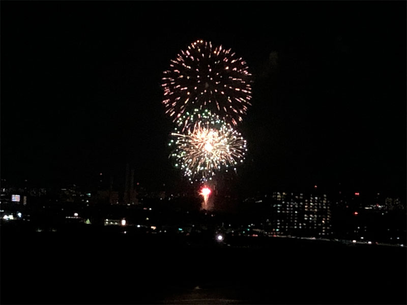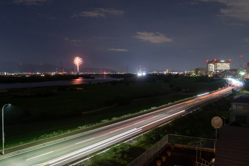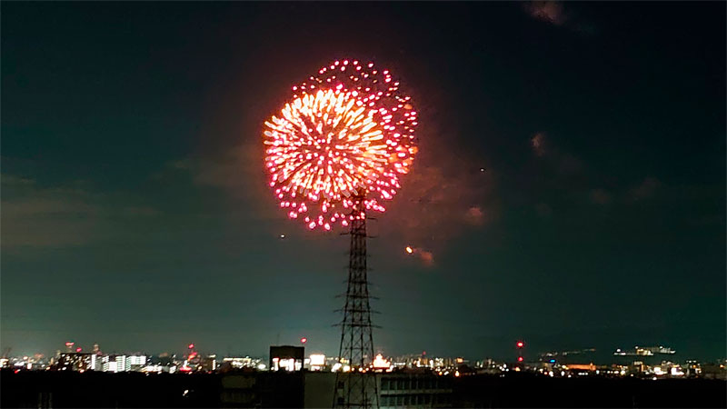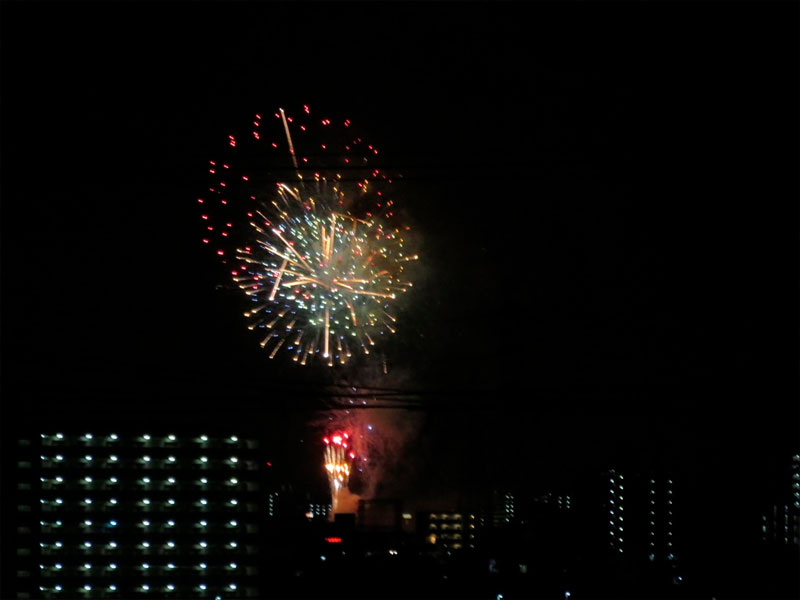 打ち上げの事は知りませんでしたが、20時過ぎに花火らしき音が聞こえ始め、どこで鳴ってるのか?と思って見たら高槻方面の淀川河川敷らしいと確認。