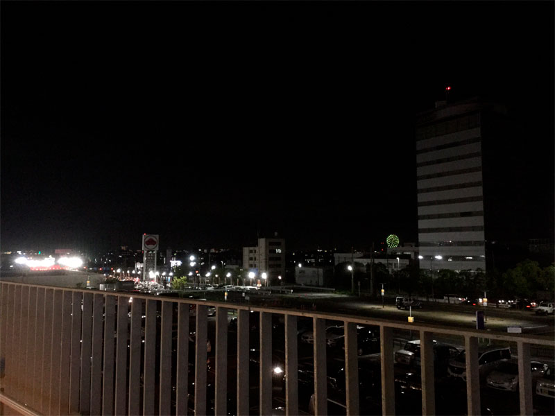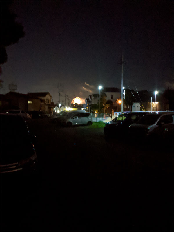 花火は写真中央の光ってるやつです。ここまで音が聞こえていました。