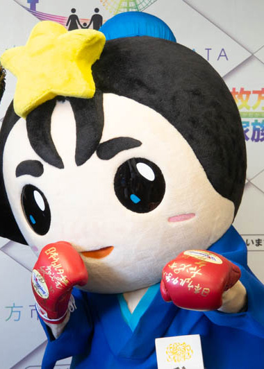 (日本ウェルター級王者の矢田良太さんが表敬訪問した時のひこぼしくん写真)