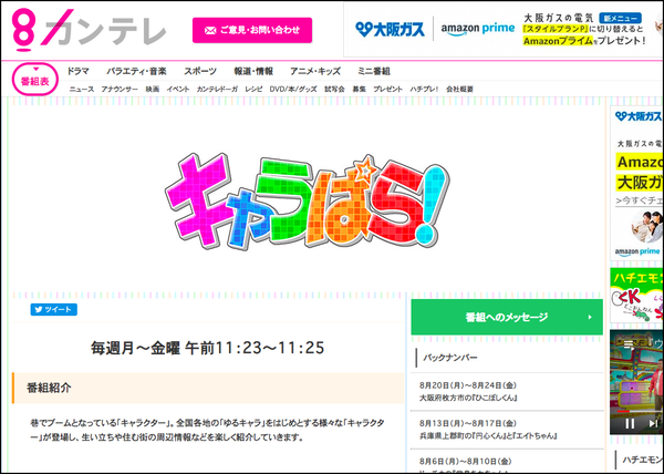 関西テレビの「キャラぱら!」に今週はずっと枚方のゆるキャラ『ひこぼしくん』が登場するようです。