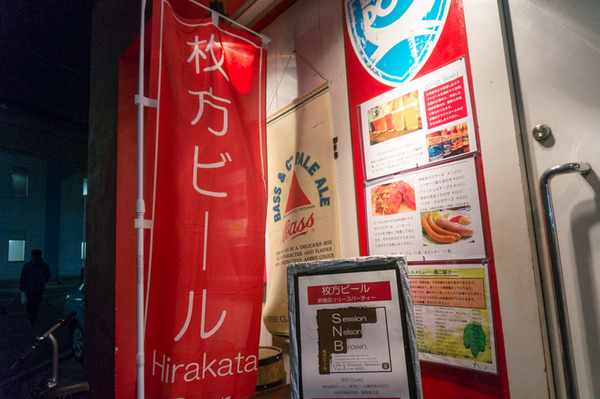 入り口には「枚方ビール」ののぼりが立っていました。
