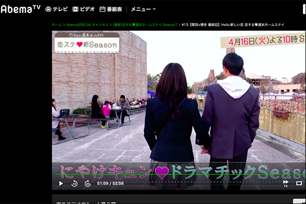 AbemaTVで配信されている恋愛リアリティ番組「恋する週末ホームステイ」にひらかたパークが映っています。