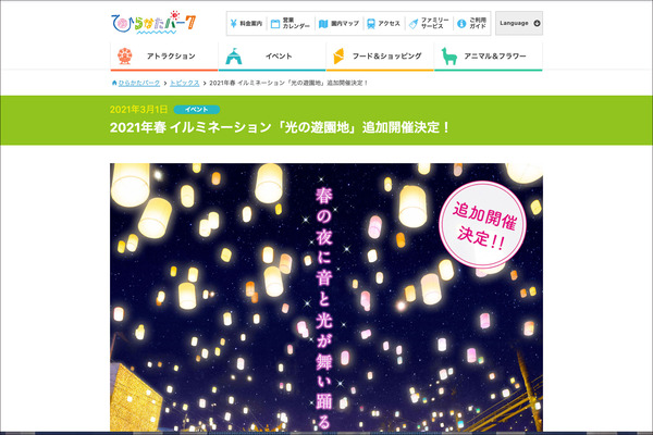 2021年春 イルミネーション「光の遊園地」追加開催決定! | ひらかたパーク