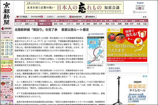 上記リンク先によると、以前紹介した北陸新幹線が京田辺市を通り、松井山手に新駅ができるという話が、与党整備新幹線建設推進プロジェクトチームの会合で正式に決定された模様。以前までは“正式”ではなかったんですが、今回は“正式”にきまったというかたち。来年度から調査などがはじまるようです。
