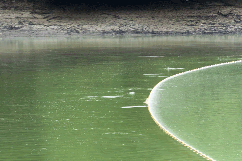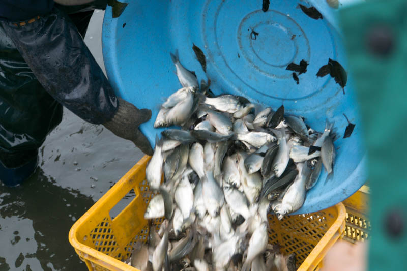 網の横では謎の水の動きが。魚が網を抜けたりしているんでしょうか。