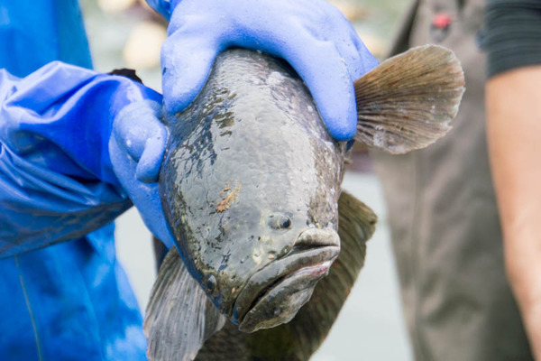 捕らえた在来魚はトラックに積まれたいけすに移動され、その後は園内の別の池へ移送されたそう。