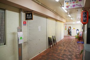 空堀商店街で子供用の靴下の落し物が柱にかけられています。