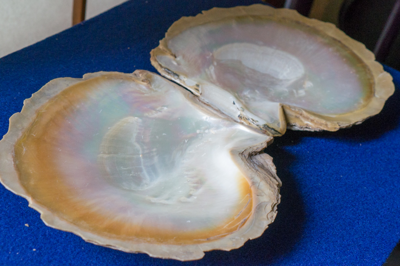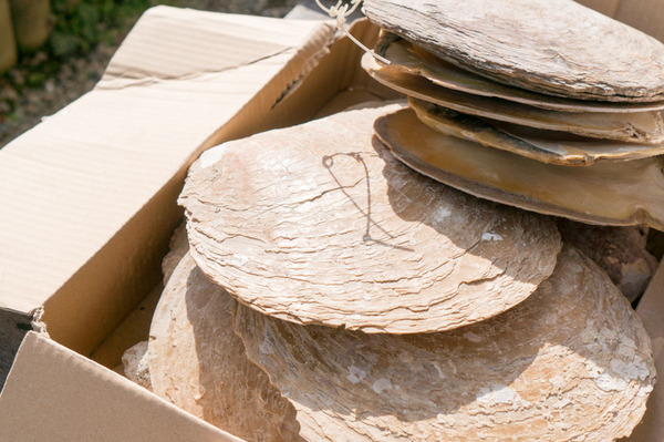 作品に使われる白蝶貝は、大きいものだと成人男性の手のひら以上の大きさです。