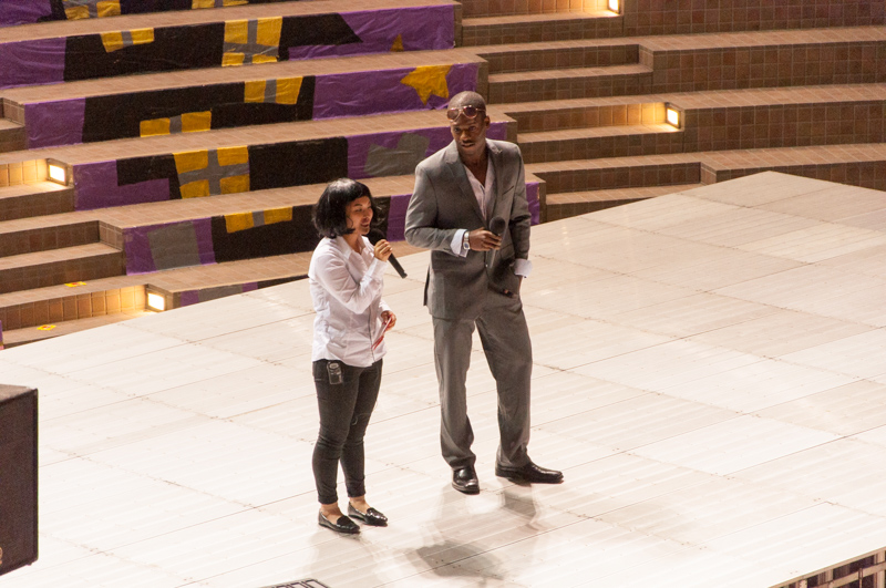 ステージ上には司会のふたり。男性の方は日本語ぺらぺらの黒人男性でした。