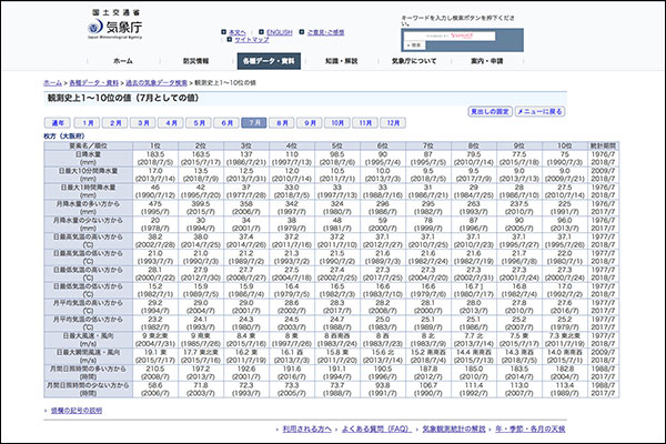 そして本日7月16日のデータは気象庁のこちらのページで見ることができまして、今日は37.8℃だったので、繰越で4位にランクインし、この3日間で7月の記録3〜5位を占めたことになりました。