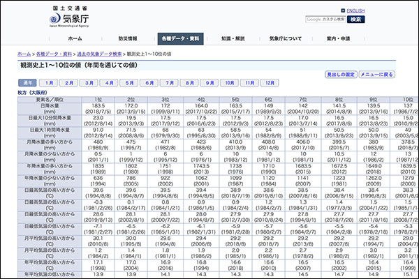 気象庁|過去の気象データ検索